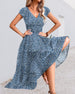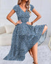 SPECIFICATIONS Style: Elegant Material: Cotton Blends Dress Type: A-Line Dress Length: Knee Length Neckline: V neck_V Pattern Type: Floral, Print Sleeve Type: Lantern Sleeve Sleeve Length: Half Sleeve Details: Shirred, Drawstring Fit Type: Regular Season: Spring, Summer, Fall Occasion: Daily Package Includes: 1 x Dress SIZE TABLE ...