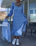 SPECIFICATIONS Style: Casual, Vacation Material: Cotton Blends Dress Type: Shift dress Dress Length: Maxi Neckline: V neck_V Pattern Type: Geometric Print Sleeve Type: Regular sleeve Sleeve Length: Long Sleeve Details: Patchwork, Slit Fit Type: Regular Season: Spring, Summer, Fall Occasion: Daily, Vacation Package Includes: 1 x Dress SIZE ...