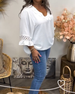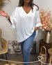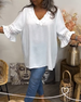 SPECIFICATIONS Top Type: Tops Style: Casual Material: Cotton Blends Occasion: Daily Neckline: V neck_V Pattern Type: Solid Color Sleeve Type: Flare Sleeve Sleeve Length: 3/4 Sleeve Fit Type: Regular Season: Spring, Summer Package Includes: 1 x Top SIZE TABLE Size Bust Length CM INCH CM INCH S 95 37.40 68 26.77 M 100 39.37 6...