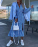 SPECIFICATIONS Style: Casual Material: 5% Spandex,95% Polyester Dress Type: Shirt Dress Length: Knee Length Neckline: Lapel Pattern Type: Print Sleeve Type: Regular sleeve Sleeve Length: Long Sleeve Details: Patchwork, Buttons Fit Type: Regular Season: Spring, Summer, Fall Occasion: Daily Package Includes: 1 x Dress SIZE TABLE Size ...