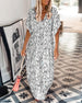 SPECIFICATIONS Style: Casual, Vacation Material: 100% Polyester Dress Type: Shift dress Dress Length: Maxi Neckline: V neck_V Pattern Type: Print Sleeve Type: Regular sleeve Sleeve Length: Short Sleeve Fit Type: Loose Season: Spring, Summer, Fall Occasion: Daily, Vacation Package Includes: 1 x Dress SIZE TABLE Size Bust Leng...