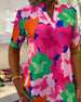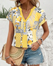 V-Neck Short-Sleeved Floral Print Blouse