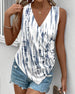 V-Neck Sleeveless Printed Irregular Tank Top