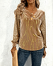 V-Neck Sequined Velvet Patchwork Top