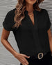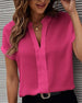 V-neck short-sleeved solid color blouse