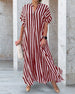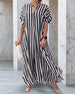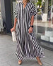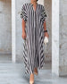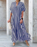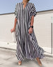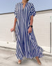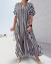 SPECIFICATIONS Style: Casual Material: Cotton Blends Dress Type: Shirt Dress Length: Maxi Neckline: V neck_V Pattern Type: Striped Sleeve Type: Dropped shoulder Sleeve Length: Short Sleeve Details: Slit Fit Type: Loose Season: Spring, Summer, Fall Occasion: Daily Package Includes: 1 x Dress SIZE TABLE (cm) Size Bust Length c...