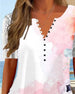 SPECIFICATIONS Top Type: T-shirt Style: Vacation Material: Cotton Blends Occasion: Daily Neckline: V neck_V Pattern Type: Solid Color Sleeve Type: Regular sleeve Sleeve Length: Short Sleeve Fit Type: Regular Season: Spring, Summer, Fall Details: Buttons Package Includes: 1 x T-shirt SIZE TABLE (cm) Size Bust Length Sleeve l...