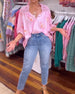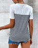 V-Neck Striped Contrast Casual Blouse