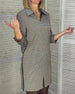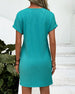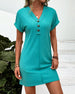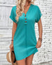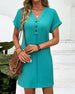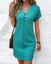 V-Neck Solid Color Three-Button Short-Sleeved Dress