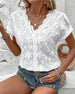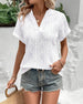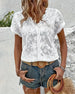 SPECIFICATIONS Top Type: Blouses Style: Casual Material: Cotton Blends Occasion: Daily Neckline: V neck_V Pattern Type: Solid Color Sleeve Type: Regular sleeve Sleeve Length: Short Sleeve Fit Type: Regular Season: Spring,Summer Details: Hollow Out Package Includes: 1 x Blouse SIZE TABLE Size Bust Length CM INCH CM INCH S 97 38.19...