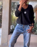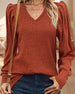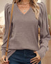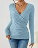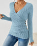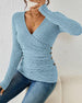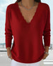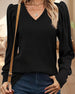 V-neck solid color long-sleeved top