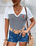 V-Neck Striped All-Match T-Shirt