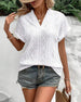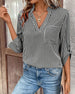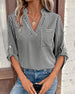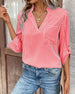 V-Neck Solid Color Hollow Breathable Blouse