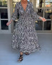 SPECIFICATIONS Style: Elegant Material: Cotton Blends Dress Type: A-Line Dress Length: Maxi Neckline: V neck_V Pattern Type: Print Sleeve Type: Regular sleeve Sleeve Length: 3/4 Sleeve Details: Shirred Fit Type: Regular Season: Spring, Summer, Fall Occasion: Daily Package Includes: 1 x Dress SIZE TABLE Size Bust Length CM INC...
