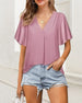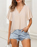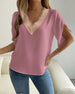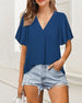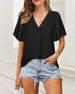 V-neck solid color pleated short-sleeved shirt