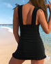 SPECIFICATIONS Style: Vacation, Sexy Material: 82% Chinlon, 18% Spandex Occasion: Vacation Neckline: V neck_V Pattern Type: Solid Color Sleeve Length: Sleeveless Top Type: Swimdress Bra Type: Push Up Bottom Type: Natural Fit Type: Regular Season: Summer Package Includes: 1 x Swimdress, 1 x Bottom SIZE TABLE Size Bust Waist Hip Under bus...