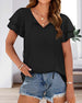 V-Neck Solid Color Elegant Short-Sleeved T-Shirt