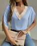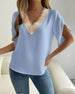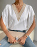 V-neck solid color lace temperament blouse