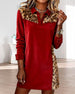 Women's Casual Christmas Leopard Print Patchwork Dress