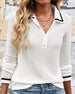 Casual Striped Print Contrast Color Half-Button Top