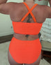 SPECIFICATIONS Style: Vacation Material: 82% Chinlon,18% Spandex Occasion: Vacation Neckline: V neck_V Pattern Type: Solid Color Sleeve Length: Sleeveless Top Type: Bikini Bra Type: Wireless Bra Bottom Type: Natural Fit Type: Skinny Details: Cross Straps Package Includes: 1 x Bikini SIZE TABLE Size Bust Waist Hip Under bust CM INCH CM INCH...