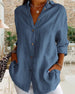 SPECIFICATIONS Top Type: Blouses Style: Casual Material: Cotton Blends Occasion: Daily Neckline: Stand Collar Pattern Type: Sequin Sleeve Type: Regular sleeve Sleeve Length: 3/4 Sleeve Fit Type: Regular Season: Spring,Summer Details: Pocket,Buttons Package Includes: 1 x Blouse SIZE TABLE Size Bust Length CM INCH CM INCH S 97 38.1...