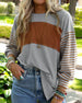 Casual striped contrast color crew neck top