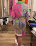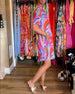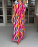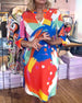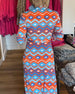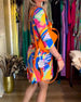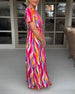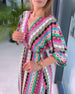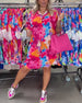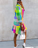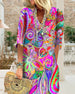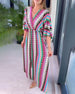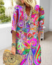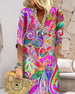 Colorful patchwork printed V-neck three-quarter sleeve dress