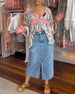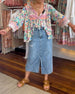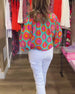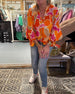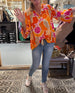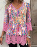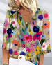 Colorful floral print V-neck three-quarter sleeve casual shirt