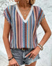 SPECIFICATIONS Top Type: T-shirt Style: Casual Material: Cotton Blends Neckline: V neck_V Pattern Type: Print Sleeve Type: Regular sleeve Sleeve Length: Short Sleeve Fit Type: Regular Season: Spring,Summer Details: Lace Package Includes: 1 x T-shirt SIZE TABLE Size Bust Length CM INCH CM INCH S 97 38.19 65 25.59 M 101 39.76 66...
