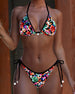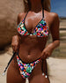 SPECIFICATIONS Style: Vacation Material: 15% Spandex, 85% Polyester Occasion: Vacation Neckline: Halter Pattern Type: Print Top Type: Bikini Bra Type: Wireless Bra Bottom Type: Tie Side Fit Type: Skinny Season: Summer Details: Lace Up Package Includes: 1 x Bikini SIZE TABLE Size Bust Waist Hip Under bust CM INCH CM INCH CM INCH CM INCH S...