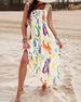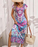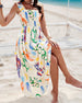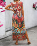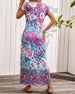 SPECIFICATIONS Style: Casual,Vacation Material: 5% Spandex,95% Polyester Dress Type: Shift dress Dress Length: Maxi Neckline: U Neck_U Pattern Type: Print Sleeve Type: Regular sleeve Sleeve Length: Short Sleeve Details: Slit Fit Type: Regular Season: Summer Occasion: Daily,Vacation Package Includes: 1 x Dress SIZE TABLE Size Bust Len...