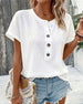 SPECIFICATIONS Top Type: T-shirt Style: Casual Material: Cotton Blends Occasion: Daily Neckline: Round Neck Pattern Type: Solid Color Sleeve Type: Regular sleeve Sleeve Length: Short Sleeve Fit Type: Regular Season: Spring,Summer Details: Buttons Package Includes: 1 x T-shirt SIZE TABLE Size Bust Length CM INCH CM INCH S 97 38.1...