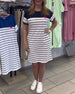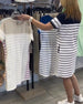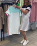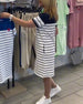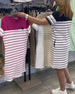 SPECIFICATIONS Style: Casual Material: Cotton Blends Dress Type: Shift dress Dress Length: Knee Length Neckline: Round Neck Pattern Type: Striped Sleeve Length: Short Sleeve Details: Pocket Fit Type: Regular Season: Spring,Summer Occasion: Daily Package Includes: 1 x Dress SIZE TABLE Size Bust Length CM INCH CM INCH S 97 38.19 10...