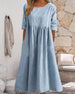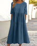 SPECIFICATIONS Style: Casual Material: Cotton and linen Dress Type: Shift dress Dress Length: Midi Neckline: Round Neck Pattern Type: Solid Color Sleeve Type: Regular sleeve Sleeve Length: Half Sleeve Details: Pocket Fit Type: Loose Season: Spring, Summer, Fall Occasion: Daily Package Includes: 1 x Dress SIZE TABLE (cm) Size Bu...