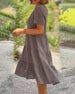 SPECIFICATIONS Style: Casual Material: Cotton and linen Dress Type: Shift dress Dress Length: Knee Length Neckline: V neck_V Pattern Type: Solid Color Sleeve Type: Regular sleeve Sleeve Length: Short Sleeve Fit Type: Regular Season: Spring, Summer, Fall Occasion: Daily Package Includes: 1 x Dress SIZE TABLE Size Bust Length c...