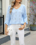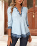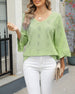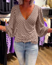 Dot Patchwork Lantern Sleeve V-Neck Tops
