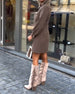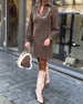 SPECIFICATIONS Style: Elegant Material: 5% Spandex, 95% Polyester Dress Type: Wrap Dress Length: Midi Neckline: High Neck Pattern Type: Color Block Sleeve Type: Regular sleeve Sleeve Length: Long Sleeve Details: Slit, Shirred Fit Type: Regular Season: Spring, Fall, Winter Occasion: Daily Package Includes: 1 x Dress SIZE TABLE Si...