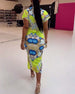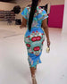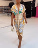 SPECIFICATIONS Style: Sexy Material: 95% Cotton, 5% Polyester Dress Type: Bodycon Dress Length: Midi Neckline: V neck_V Pattern Type: Print Sleeve Type: Regular sleeve Sleeve Length: Short Sleeve Details: Slit,Shirred Fit Type: Skinny Season: Summer Occasion: Daily Package Includes: 1 x Dress SIZE TABLE Size Bust Length CM I...