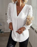 SPECIFICATIONS Top Type: Tops Style: Casual Material: Cotton Blends Occasion: Daily Neckline: V neck_V Pattern Type: Sequin Sleeve Type: Regular sleeve Sleeve Length: Long Sleeve Fit Type: Regular Season: Fall,Winter Package Includes: 1 x Top SIZE TABLE Size Bust Length CM INCH CM INCH S 92 36.22 65 25.59 M 96 37.8 66.5 26.18 L 10...