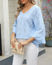 SPECIFICATIONS Top Type: Tops Style: Casual Material: Cotton Blends Occasion: Daily Neckline: V neck_V Pattern Type: Geometric Print Sleeve Type: Flare Sleeve Sleeve Length: Nine Points Sleeve Fit Type: Regular Season: Spring,Summer Details: Hollow Out Package Includes: 1 x Top SIZE TABLE Size Bust Sleeves Shoulder Length CM INCH CM I...