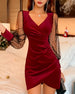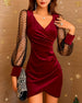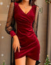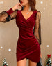 SPECIFICATIONS Style: Casual Material: Mesh,Velvet Dress Type: Bodycon Dress Length: Knee Length Neckline: V neck_V Pattern Type: Solid Color Sleeve Type: Regular sleeve Sleeve Length: Long Sleeve Details: Patchwork Fit Type: Regular Season: Fall,Winter Occasion: Daily Package Includes: 1 x Dress SIZE TABLE Size Bust Length CM INCH...