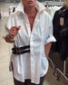 SPECIFICATIONS Top Type: Shirt Style: Chic Material: Cotton Blends Occasion: Daily,Work Neckline: Shirt Collar Pattern Type: Solid Color Sleeve Type: Dropped shoulder Sleeve Length: Long Sleeve Fit Type: Regular Season: Fall,Winter Details: Buckle,Buttons Package Includes: 1 x Shirt SIZE TABLE Size Bust Length CM INCH CM INCH S 9...