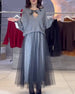 Batwing Sleeve Shimmering Pullover And Skirt