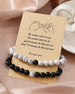 FEATURES Elegant Design: The bracelet set features a harmonious combination of white stone beads and matte black stone beads, creating a striking contrast that's both modern and timeless. Natural Elements: Crafted from natural stones, the white stone beads offer a unique texture and subtle marbling, while the matte black stones add a sleek, und...