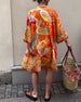 Bell sleeve loose printed dress