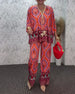 SPECIFICATIONS Style: Casual Top Type: Blouses Category: Sets Material: Cotton Blends Pattern Type: Print Neckline: V neck_V Sleeve Type: Regular sleeve Sleeve Length: 3/4 Sleeve Pants Type: Straight Leg Pants Length: Long Waist Type: Mid Waist Fit Type: Regular Season: Spring,Summer Occasion: Daily Package Includes: 1 x Blouse, 1 x Pants SIZE...