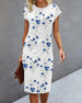 Blue Floral Print Dress with Short Sleeves