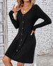 SPECIFICATIONS Style: Elegant Material: Cotton Blends Dress Type: A-Line Dress Length: Knee Length Neckline: V neck_V Pattern Type: Solid Color Sleeve Type: Regular sleeve Sleeve Length: Long Sleeve Details: Buttons Fit Type: Regular Season: Spring, Summer Occasion: Daily Package Includes: 1 x Dress SIZE TABLE Size Bust Length Sl...