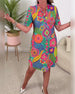 SPECIFICATIONS Style: Casual, Vacation Material: 3% Spandex,97% Polyester Dress Type: Shift dress Dress Length: Midi Neckline: V neck_V Pattern Type: Print Sleeve Type: Regular sleeve Sleeve Length: Half Sleeve Details: Slit Fit Type: Regular Season: Spring, Summer, Fall Occasion: Daily, Vacation Package Includes: 1 x Dress SIZE TABLE ...